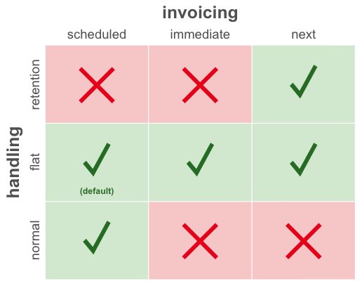 Here’s a tabular depiction of the handling and invoicing combinations: